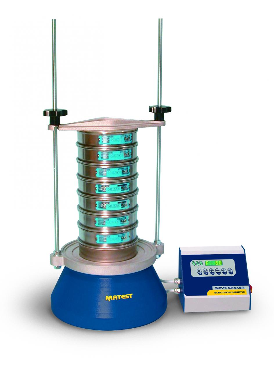 The A059-02-KIT is a high-capacity electromagnetic sieve shaker designed to accommodate a wide range of sieve diameters from Ø 200 mm to 315 mm, including 8” and 12”, making it ideal for laboratories requiring versatility and intensive use.