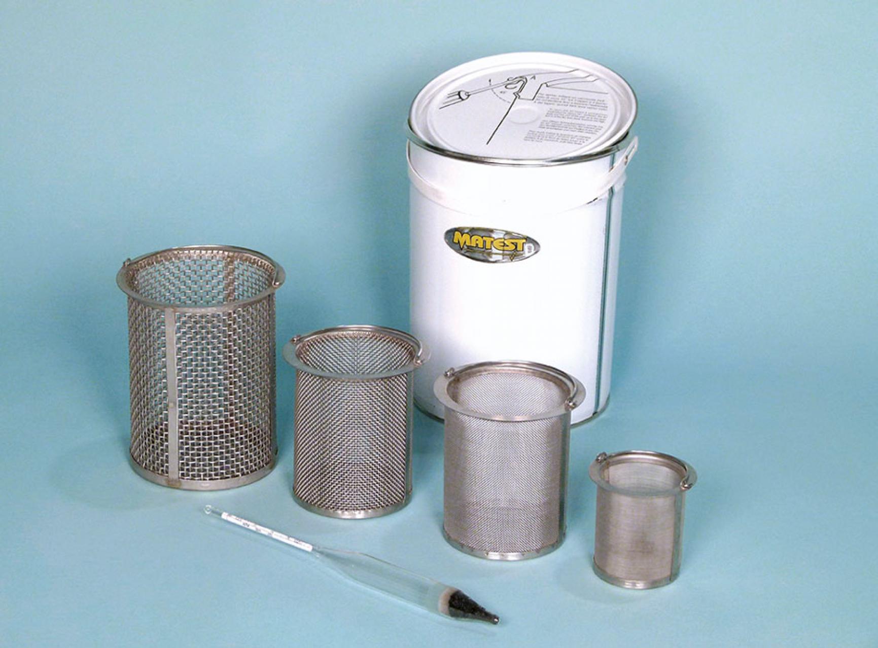 Density baskets used for the determination of thermal and weathering properties of aggregates.