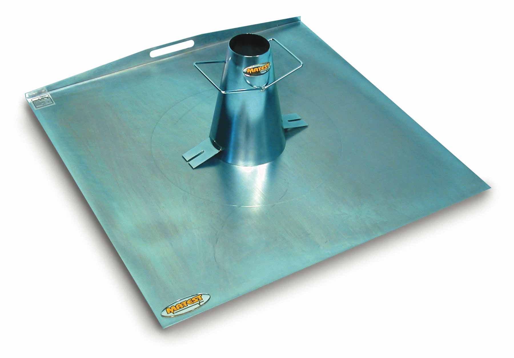 Plate, galvanized steel made, dimensions 900x900 mm, with engraved two circles having 210 and 500 mm diameter and central X cross.