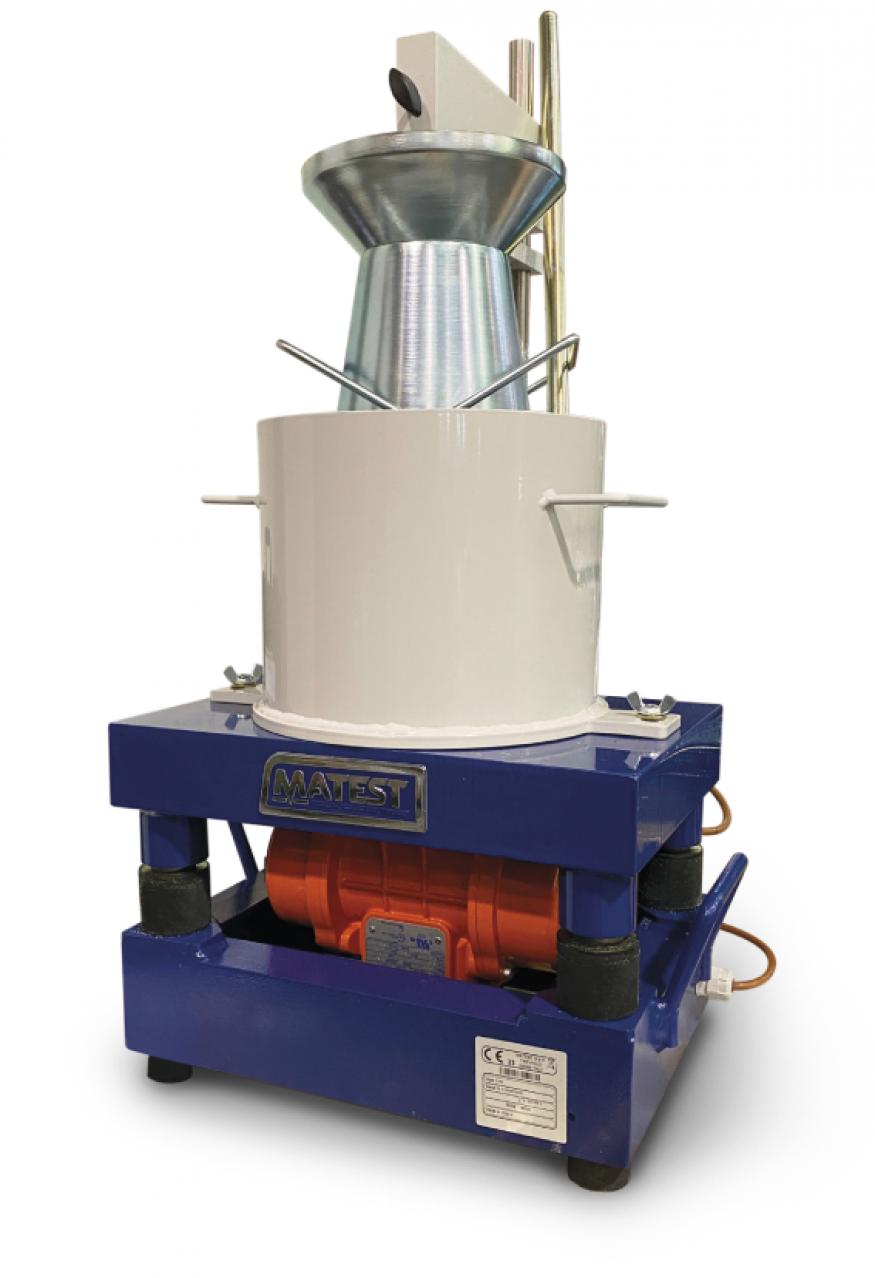 The Vebé consistometer determines the consistency and workability of concrete, based on the same principle of the slump test, but with the advantage of mechanical action. The concrete is subjected to vibration after the cone has been removed until a transparent disk placed on the material makes complete contact with it. The time required to perform the operation indicates the workability or VE-BE degree. Supplied fully equipped.