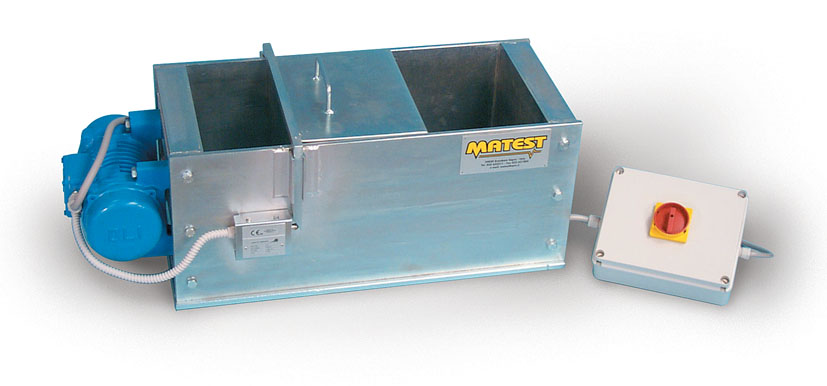 The unit consists of a prismatic receiver divided into two unequal volumes by a removable partition, and an electric vibrator.