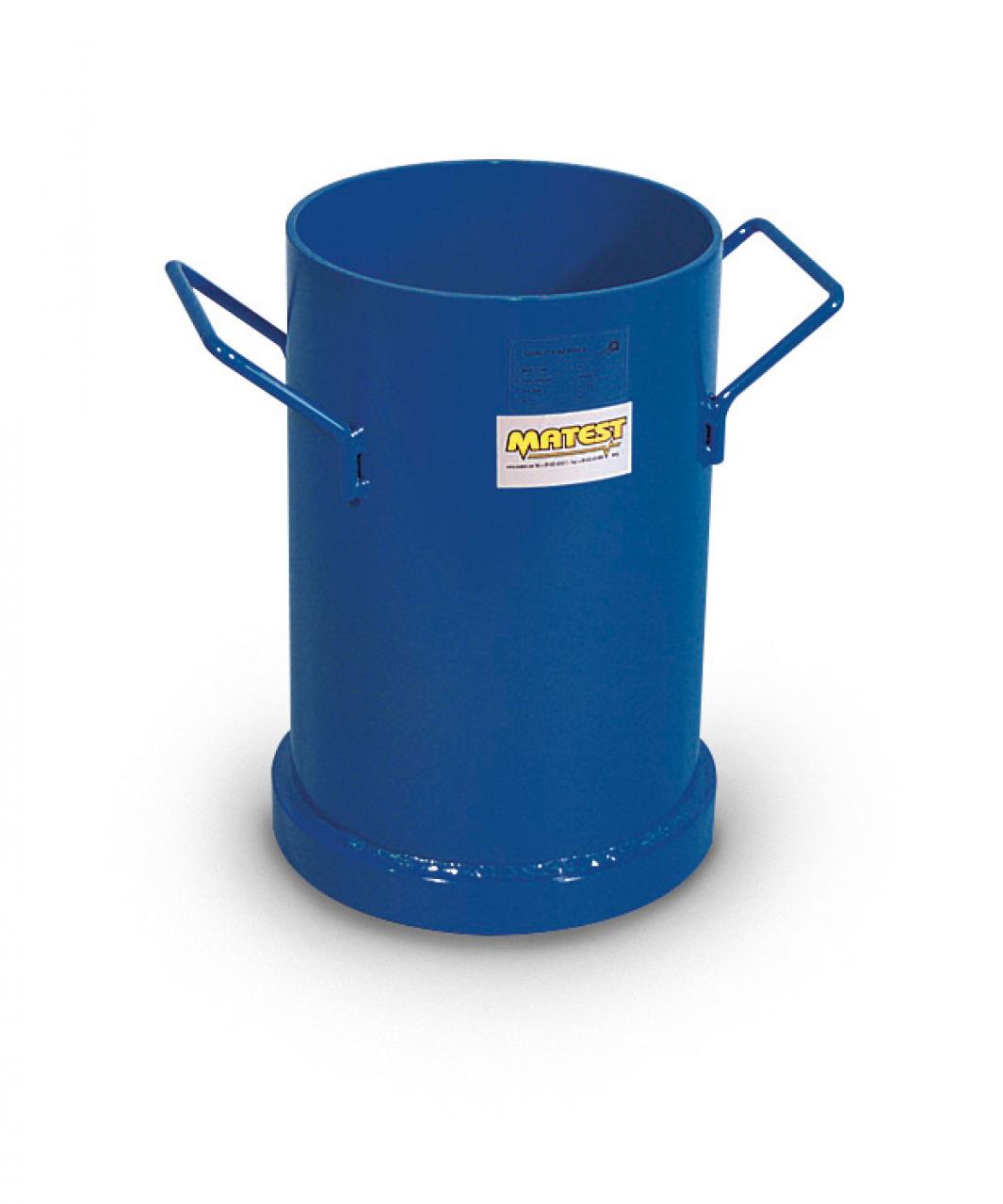 Used to determine the weight per cubic metre of freshly mixed and compacted concrete. Made from steel, 4 mm thick, with inside radius between wall and base of 20 mm, with machined rim and base.
