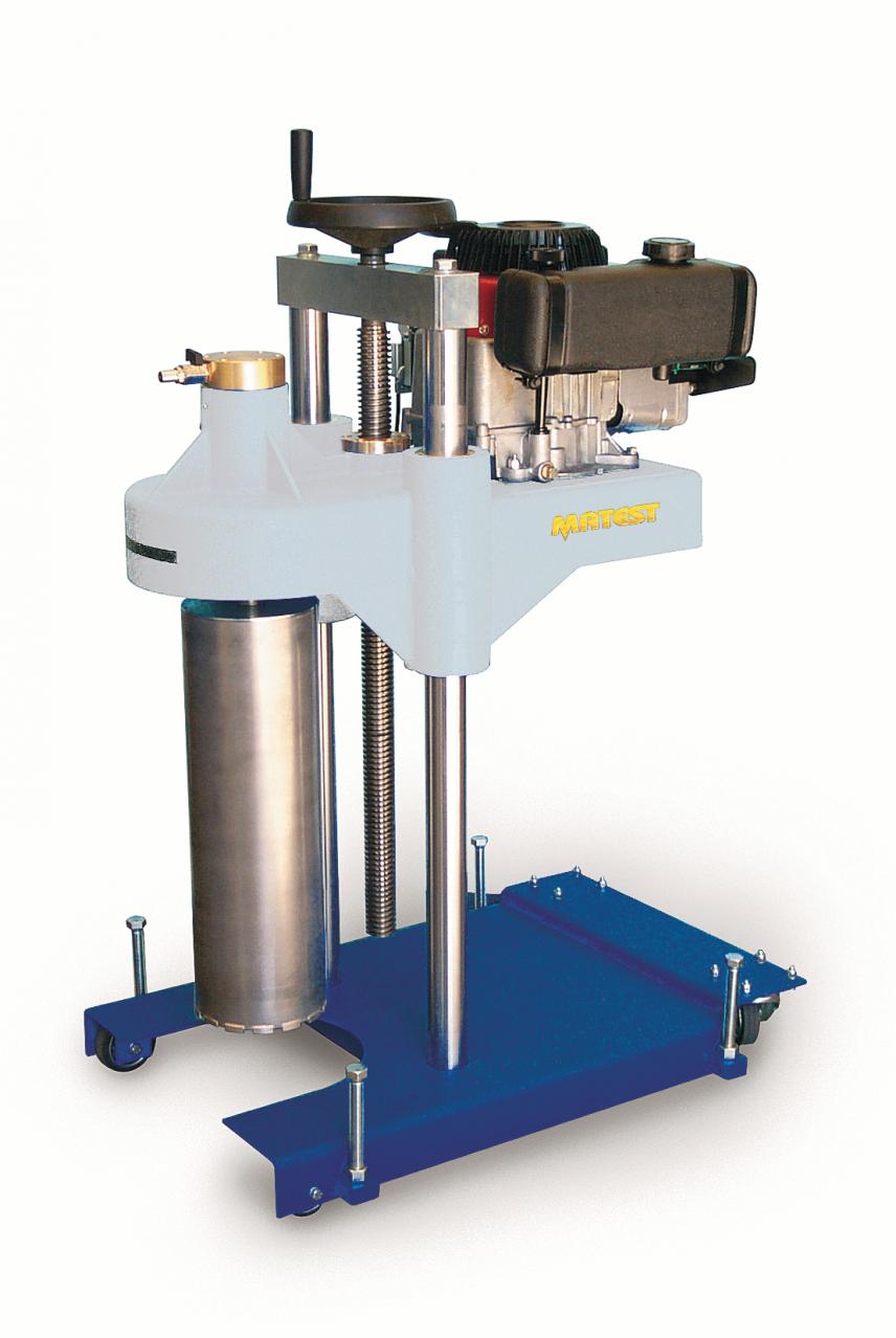 This rugged, compact and portable machine with vertical screw feed, is used for pavement core sampling where it is not easy to get electrical power.