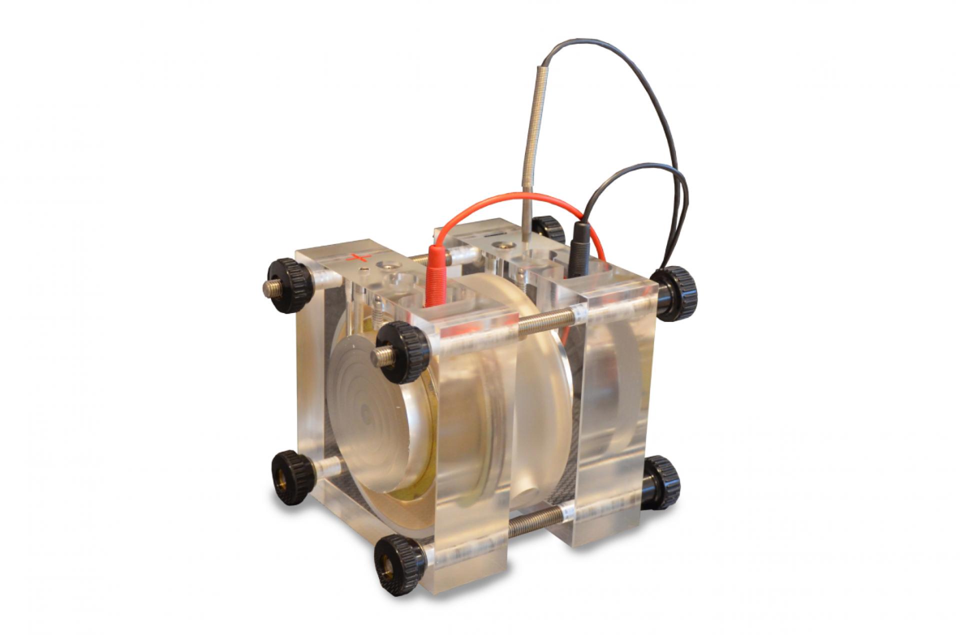 Complete test cell to ASTM C1202 for samples Ø100x50 mm. It includes 2 heads and cables, 1 temperature probe, 4 tie rods for cell tightening, 2 gaskets, and 1 rigid plastic sleeve for hydraulic seal. Dimensions: 200x150x150 mm. Weight 3.5 kg.