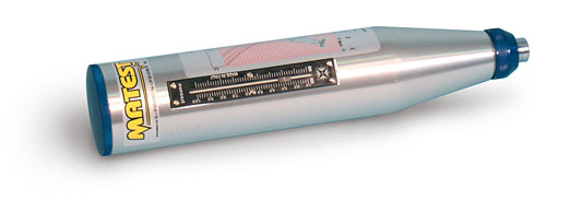 This impact hammer is used for rock classification test. The core rock specimen normally NX 54.7 mm diameter is held on a special cradle (accessory) in horizontal position, and the hammer tests the same in all its length, to obtain an average of the readings.