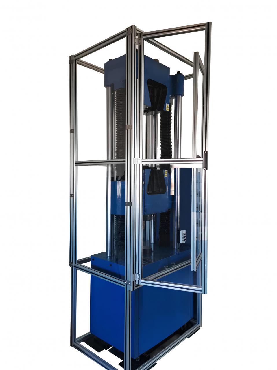 Plexiglass and aluminium doors around the testing space to grant operators safety.