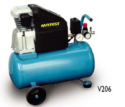 - V206: max pressure 8 bar; air delivery 222 l/min; reservoir capacity 24 litres