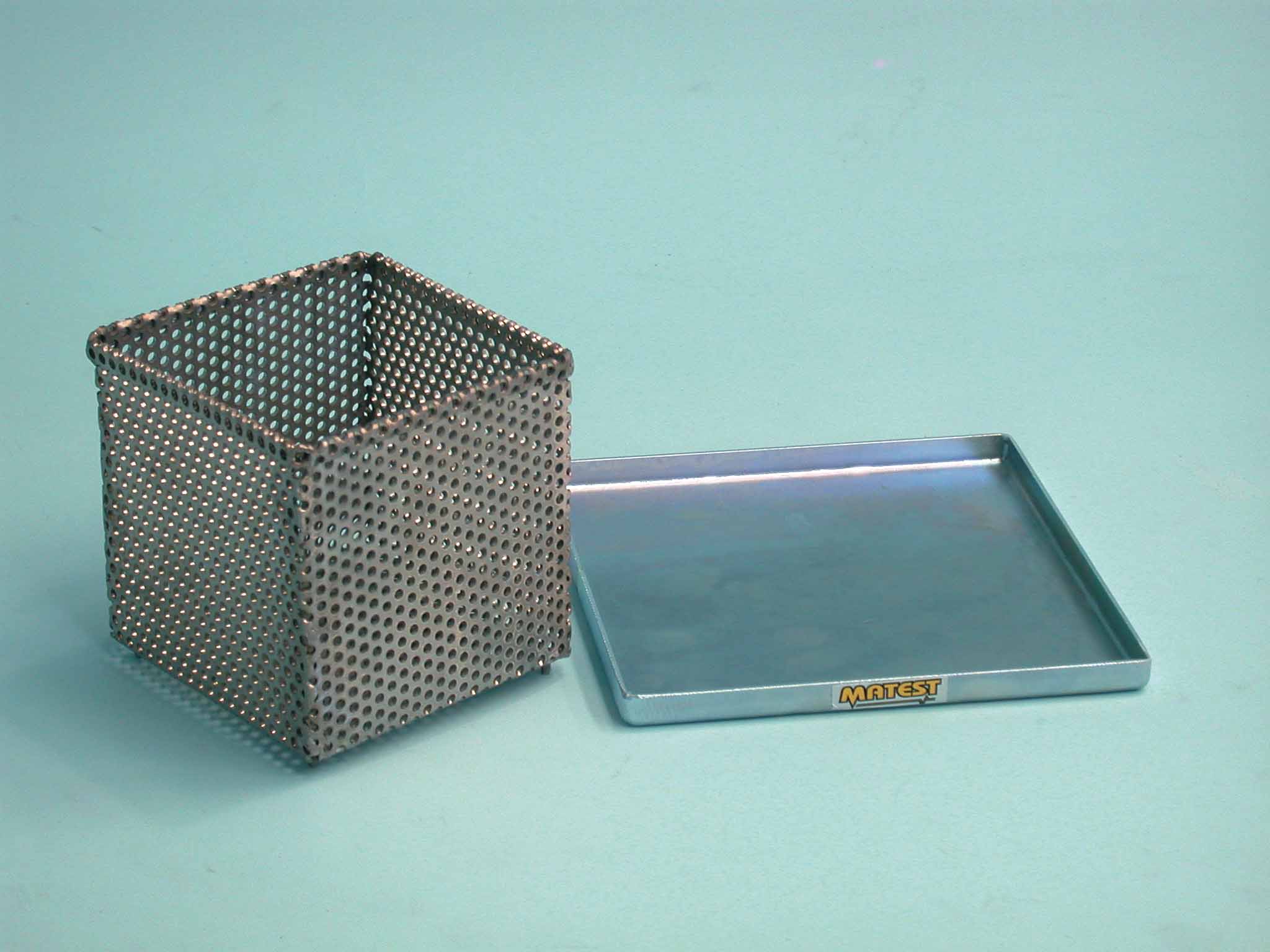 Drainage basket, dimensions 100x100x100 mm, made from stainless steel sheet with 3.15 mm diameter holes.