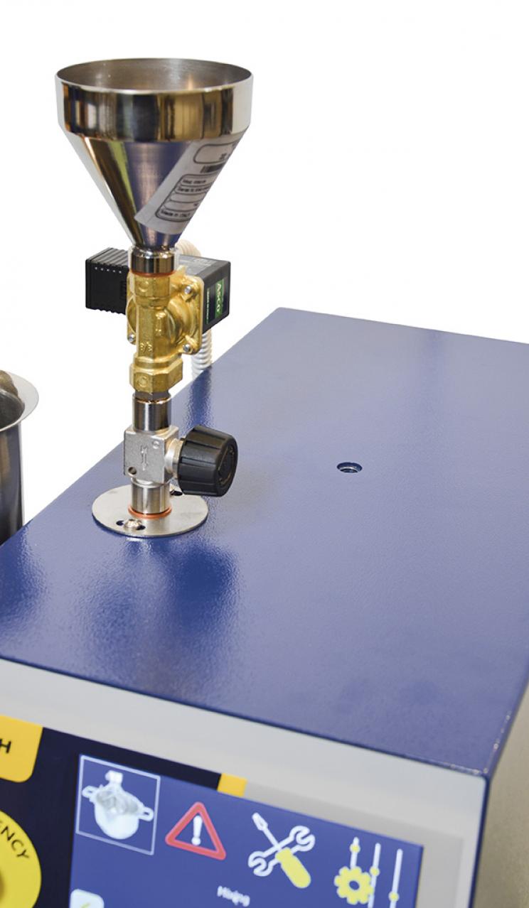 Dispenser (supplementary) with hopper for the automatic introduction (managed by the software) of water into the bowl, also during the mixing phase.