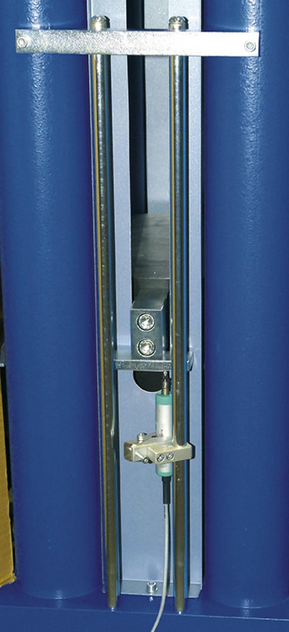 Displacement Transducer with a supporting device to measure the piston stroke and allow displacement control.