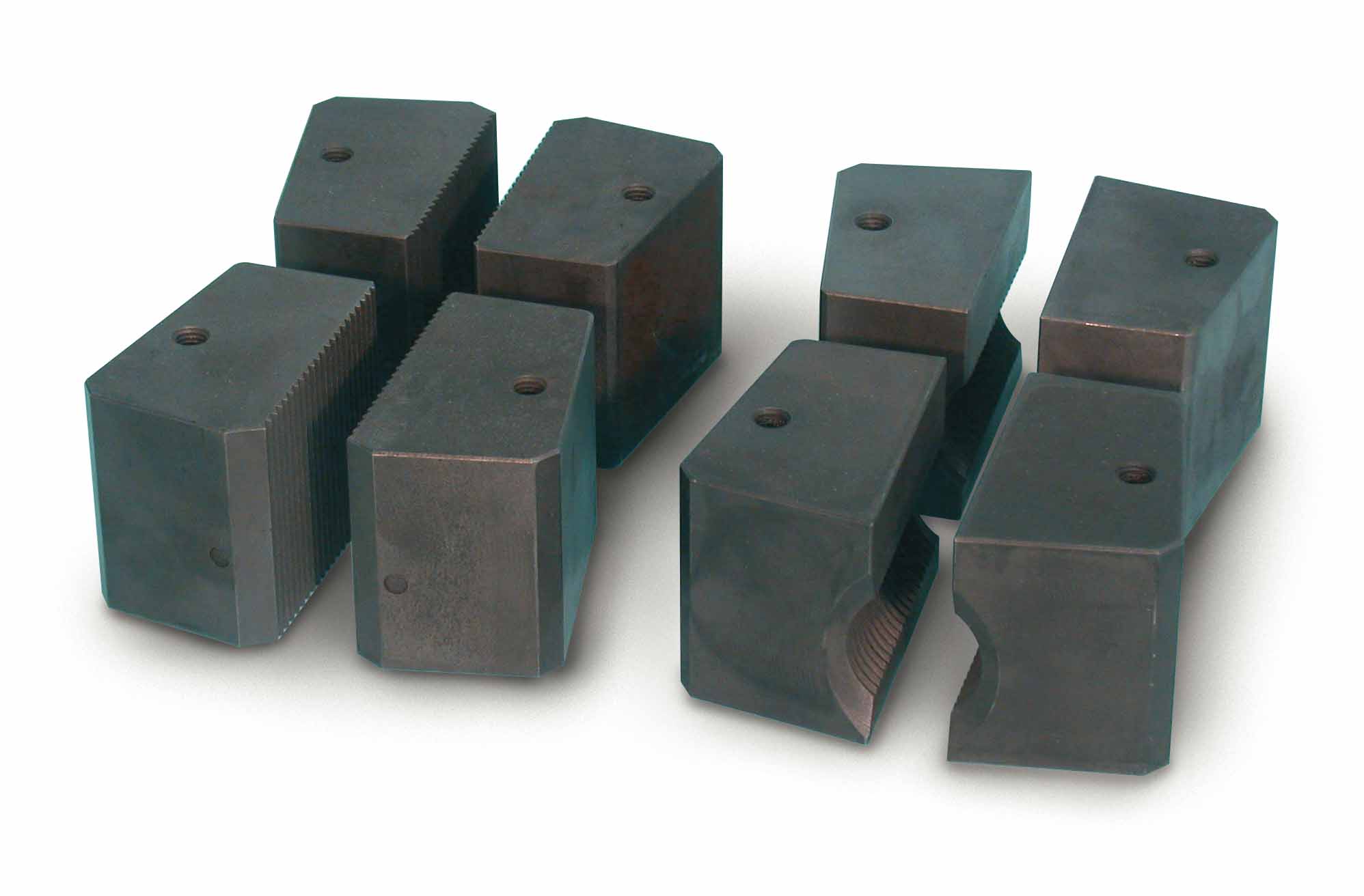 FOR TENSILE TESTS ON ROUND AND FLAT STEEL SPECIMENS:Set of 4 Jaws upper and lower for round specimens from dia.15 to 25 mm.