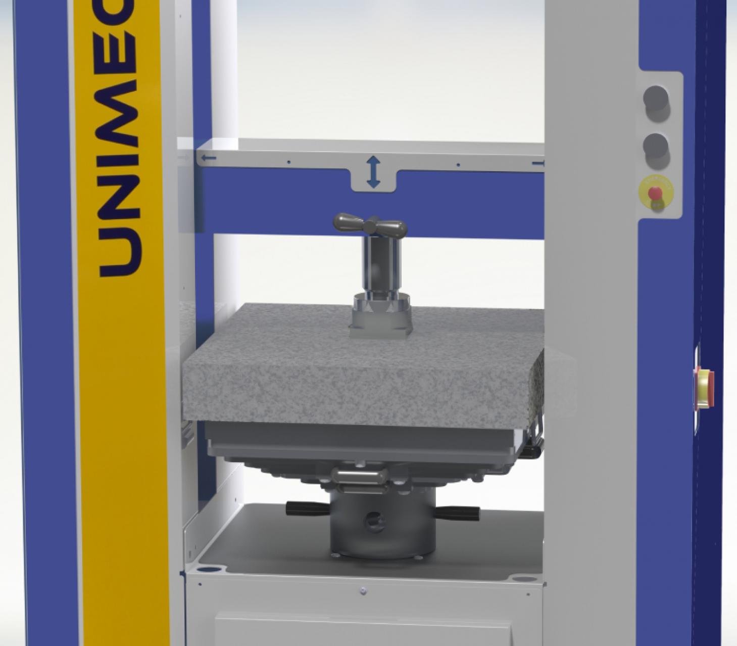 Square base, loading piston and displacement transducer for energy absorption test with Unimec 300.