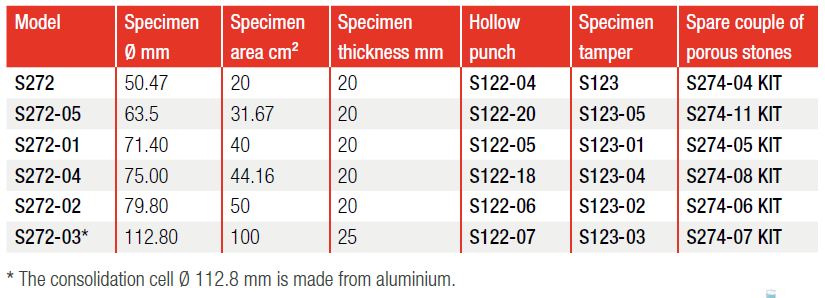 Made from brass, similar in manufacture to the fixed ring cells, they are also provided of a pipe connector with cock and graduated glass burette 10 ml capacity allowing to perform permeability tests.
