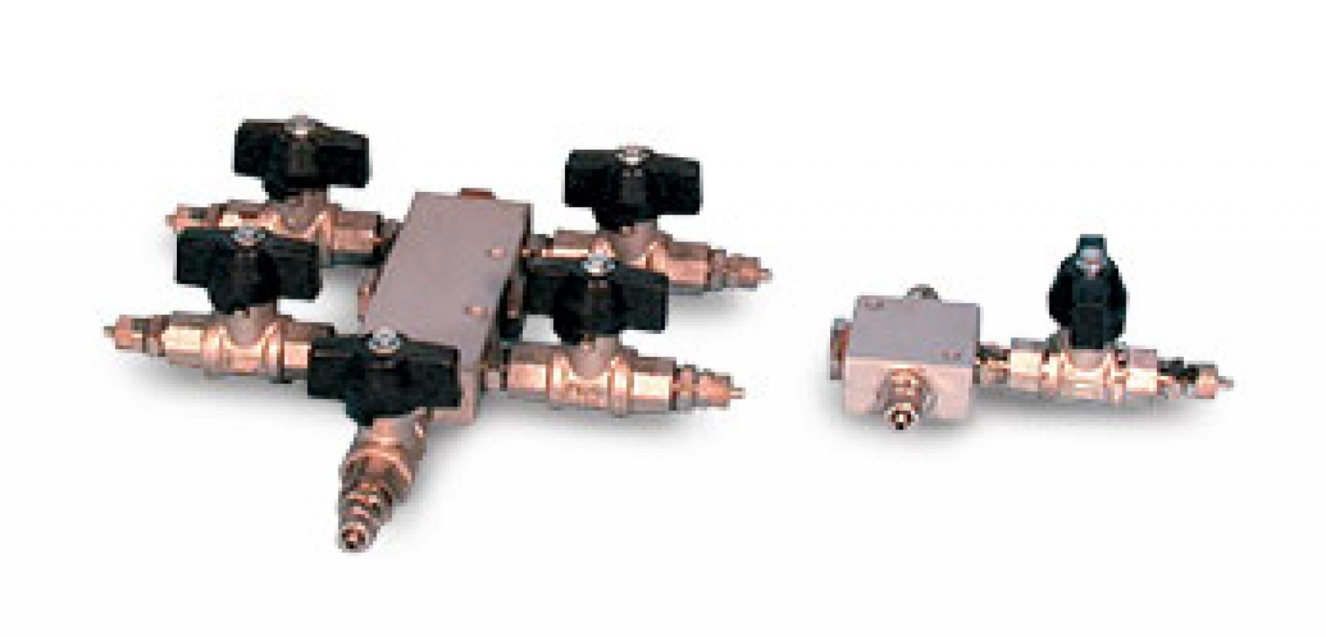 It is provided with 5 inlet/outlet valves with a null variation of volume for air or water. All valves are connected to an aluminium support. It is used to deliver pressurized water to different lines.